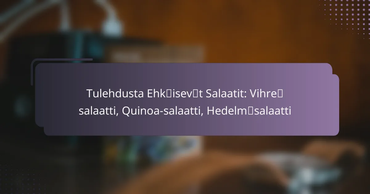 Tulehdusta ehkäisevät juomat, kuten vihreä tee, kurkuma-latte ja smoothiet, tarjoavat merkittäviä terveyshyötyjä. Ne sisältävät runsaasti antioksidantteja ja ravintoaineita, jotka voivat auttaa vähentämään tulehdusta ja parantamaan immuunijärjestelmää. Näiden juomien valmistaminen on helppoa ja ne voivat merkittävästi edistää yleistä hyvinvointia.