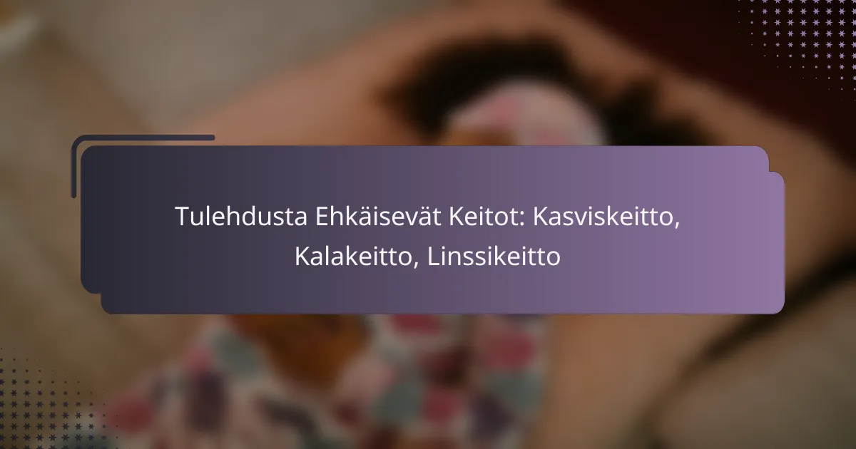 Tulehdusta ehkäisevät keitot, kuten kasviskeitto, kalakeitto ja linssikeitto, herättävät usein kysymyksiä niiden säilyvyydestä, pakastamisesta ja ravintoarvoista. Yleisimmät kysymykset liittyvät siihen, miten keittoja voi valmistaa, säilyttää ja lämmittää turvallisesti, sekä miten niiden maku ja ravintoarvot säilyvät parhaiten.