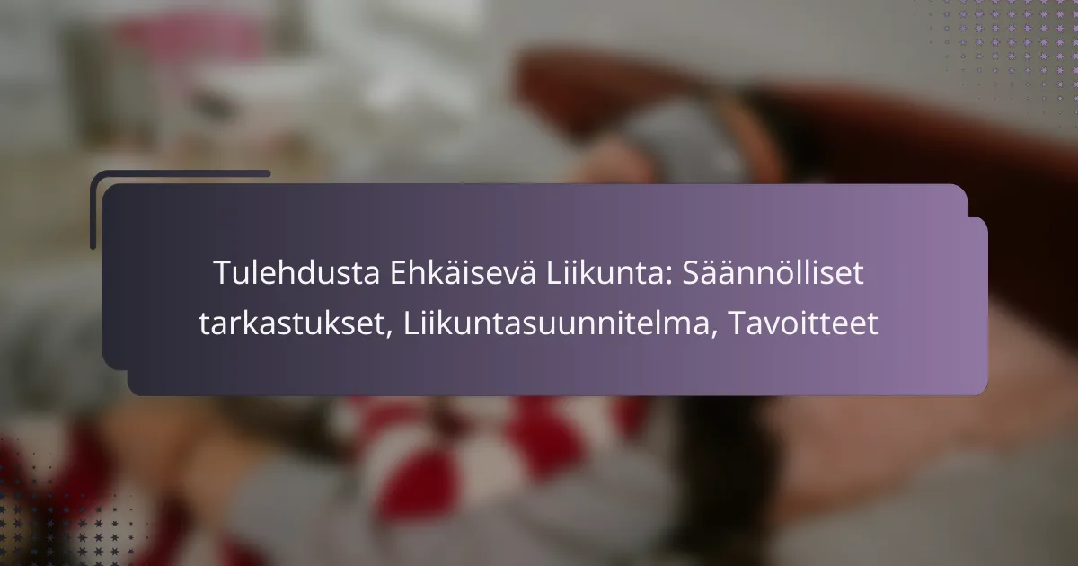 Tulehduksen ehkäisemiseksi suositellaan säännöllistä liikuntaa, joka sisältää sekä kestävyys- että voimaharjoittelua. Yleinen suositus on vähintään 150–300 minuuttia kohtuullista liikuntaa viikossa, mikä voi auttaa vähentämään tulehdusriskiä ja parantamaan yleistä terveyttä.