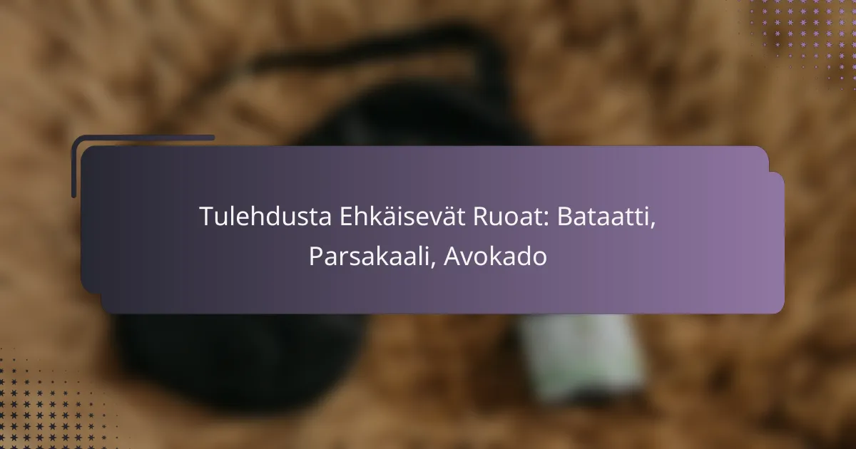 Bataatti, parsakaali ja avokado ovat ravinteikkaita ruokia, jotka voivat merkittävästi vähentää tulehdusta kehossa. Näiden ruokien sisältämät yhdisteet tukevat terveyttä ja parantavat hyvinvointia, mikä tekee niistä erinomaisen lisän päivittäiseen ruokavalioon.